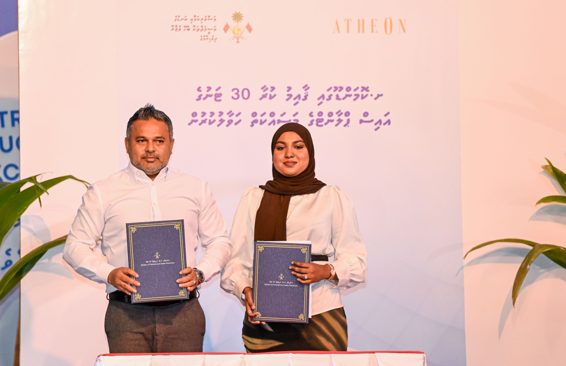 އެއްބަސްވުމުގައި ފިޝަރީޒް މިނިސްޓްރީގެ ފަރާތުން ސޮއި ކުރެއްވީ މިނިސްޓަރު އަހުމަދު ޝިޔާމް އެވެ. އެތިއޮން ޕްރައިވެޓް ލިމިޓެޑުގެ ފަރާތުން ސޮއިކުރެއްވީ އެގްޒެކެޓިވް ޑިރެކްޓަރ ކިޔާޝަތު އަބްދުﷲ އެވެ.