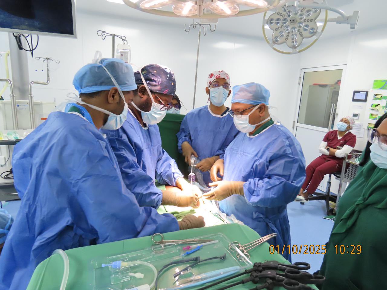 ”މި އޮކްޓޯބަރު މަހުގެ ކުރީކޮޅު، ފުރަތަމަ ޓެންކޮފް ޕެރިޓޯނިއަލް ޑަޔަލިސިސް ކެތީޓަރު ލެއްވުމުގެ ކާމިޔާބު އޮޕަރޭޝަނެއް ކުރެވުނު. މި އޮޕަރޭޝަން ކުރިއަށް ގެންދިޔައީ ސަރޖަރީ، ޔޫރޮލޮޖީ، އެނެސްތީސިއާ އަދި ނެފްރޮލޮޖީގެ ދާއިރާތަކުން ތަމްރީނު ލިބިފައިވާ ޚާއްސަ ދިވެހި ޑޮކްޓަރުންގެ ޓީމަކުން. މިހާރު މި ހިދުމަތާ ގުޅުންހުރި އިތުރު ތަމްރީނު ޕްރޮގްރާމްތައް އައިޖީއެމްއެޗްގައި ކުރިއަށްދޭ. މި ކުރިއެރުމަކީ ދިވެހިރާއްޖޭގެ ސިއްހީ ދާއިރާއަށް ލިބުނު ވަރަށް މުހިންމު އަދި ފާހަގަކޮށްލެވޭ ކުރިއެރުމެއް. ٱلْحَمْدُ لِلَّٰهِ“ ހަލީމް ވިދާޅުވެފައިވެއެވެ.