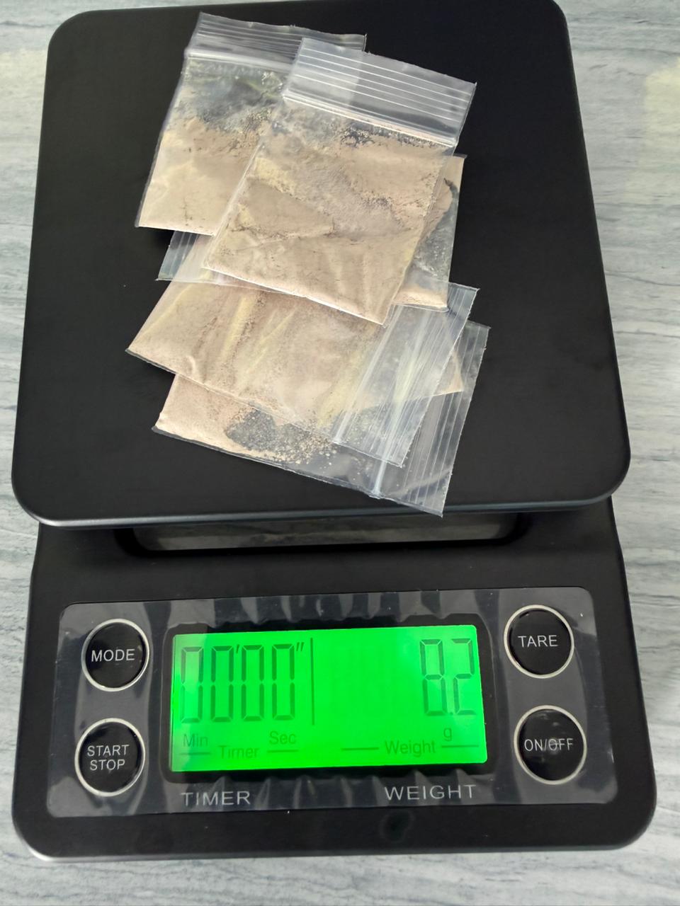 އޭނާ ފުލުހުންގެ ބެލުމުގެ ދަށަށް ގެނައި އިރު އޭނާ ހުރިތަނުން މަސްތުވާތަކެތި ކަމަށް ބެލެވޭ އެއްޗެއްހުރި 6 ރަބަރު ޕެކެޓު ފެނިފައިވާކަމަށް ފުލުހުން ބުނެފައިވެއެވެ. އެތަކެތީގެ ވަގުތީ ބަރުދަނަކީ 8.2 ގްރާމެވެ.