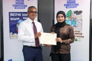 ފަތުރުވެރިކަމާއި ދެމެހެއްޓެނިވި ތަރައްޤީއަށް ޕޯސްޓަރު ކުރެހުމުގެ މުބާރާތުގެ ސެޓްފިކެޓް ހަވާލުކޮށްފިއެވެ.