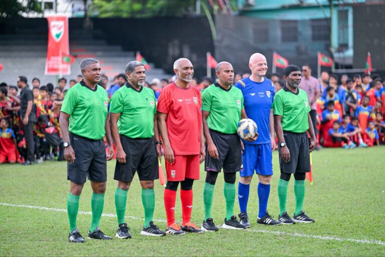 މި ޚާއްސަ ފުޓުބޯޅަ އިވެންޓުގެ ތެރެއިން، ފީފާގެ ރައީސް އާއި ރައީސުލްޖުމްހޫރިއްޔާ ޑރ. މުޙައްމަދު މުޢިއްޒު ބައިވެރިވެވަޑައިގެންނެވި ޚާއްސަ ފުޓުބޯޅަ މެޗެއް ވަނީ ކުރިއަށްގެންގޮސްފައެވެ.