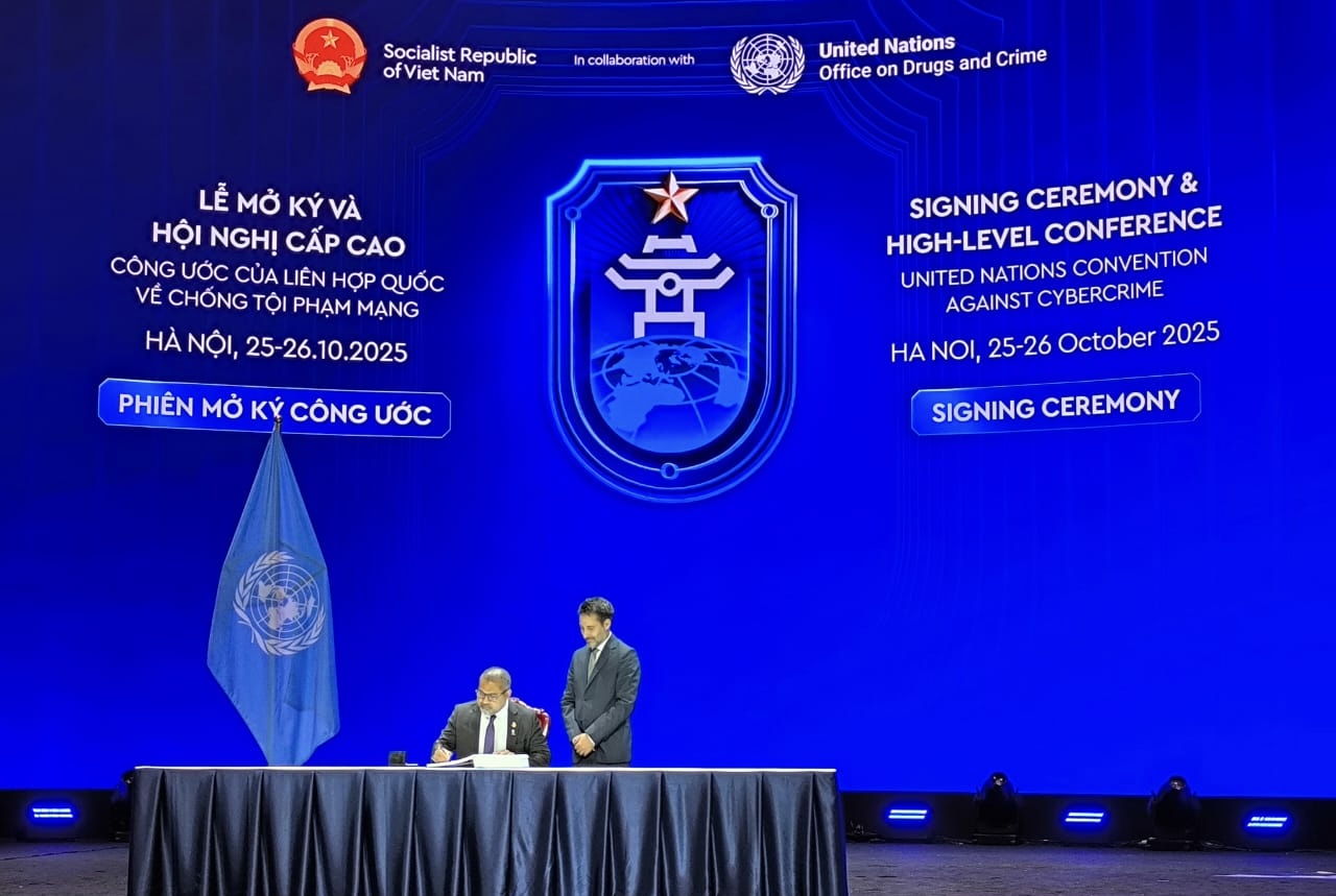 ސައިބާ ކްރައިމް ހުއްޓުވުމަށް އެކުލަވާލާފައިވާ، އ.ދ.ގެ ގޮތްތަކުގެ ދަށުން ހިނގާ ޔުނައިޓަޑް ނޭޝަންސް ކޮންވެންޝަން އަގެއިންސްޓް ސައިބާ ކްރައިމް ގައި ދިވެހިރާއްޖެއިން މިއަދު ރަސްމީކޮށް ސޮއިކޮށްފިއެވެ.