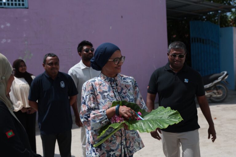 މިނިސްޓަރ މިހެން ވިދާޅުވީ، ހަނިމާދޫގައި ސްމޯލް އައިލެންޑް ޖިއޮގްރަފިކް ސޮސައިޓީން ޤާއިމްކުރި ބަޔޯޕްލާސްޓިކް ކޮތަޅު އުފެއްދުމުގެ މަރުކަޒު ހުޅުއްވައިދެއްވާ ވާހަކަ ދައްކަވަމުންނެވެ.