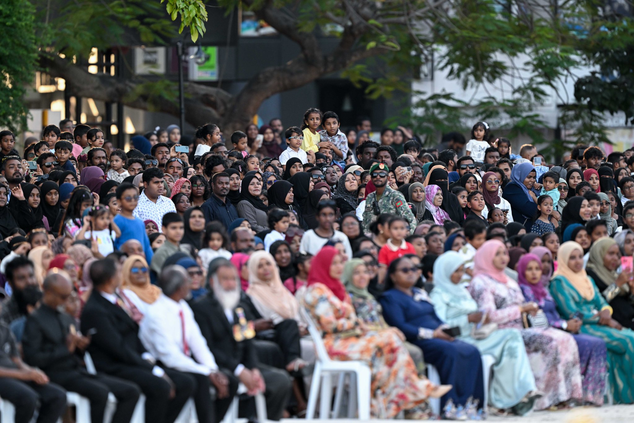 ޑިސްޕްލޭ ބައްލަވާލެއްވުމަށް ރައީސުލްޖުމްހޫރިއްޔާގެ ދެކަނބަލުން ޖުމްހޫރީ މައިދާނަށް ވަޑައިގެންނެވުމުން، އިސްތިގުބާލު ކުރެއްވީ ދިފާޢީ ވަޒީރު، އޮނަރަބަލް މުޙައްމަދު ޣައްސާން މައުމޫނާއި، ޗީފް އޮފް ޑިފެންސް ފޯސް، މޭޖަރ ޖެނެރަލް އިބްރާހީމް ޙިލްމީއެވެ.