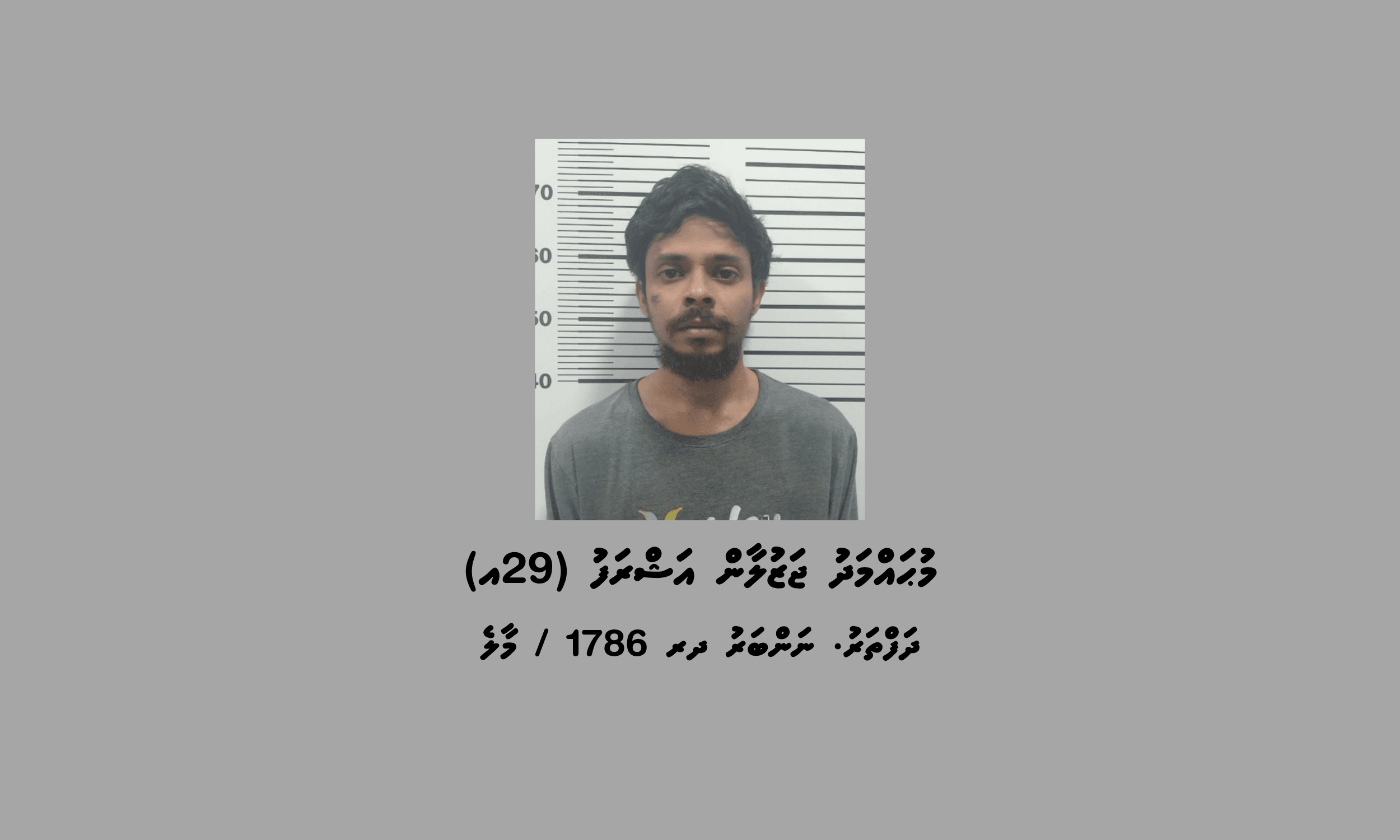 ފުލުހުން ބުނީ، މި މައްސަލައާ ގުޅިގެން، އެވަގުތު އެޕާޓްމަންޓުގައި ހުރި، ދަފްތަރު. ނަންބަރު ދރ 1786 / މާލެ، މުޙައްމަދު ޖަޒުލާން އަޝްރަފު (29 އަހަރު) ވަނީ ހައްޔަރުކޮށްފައި ކަމަށެވެ.