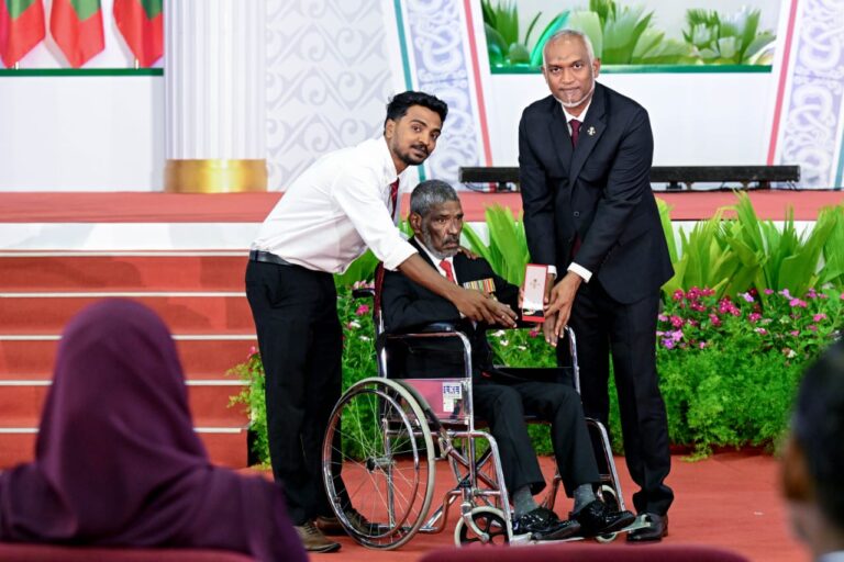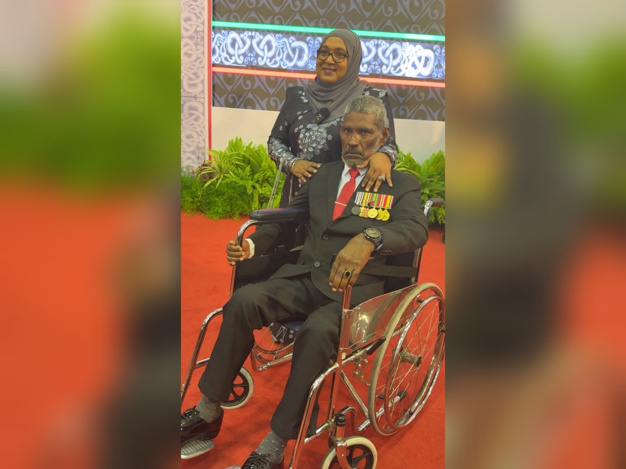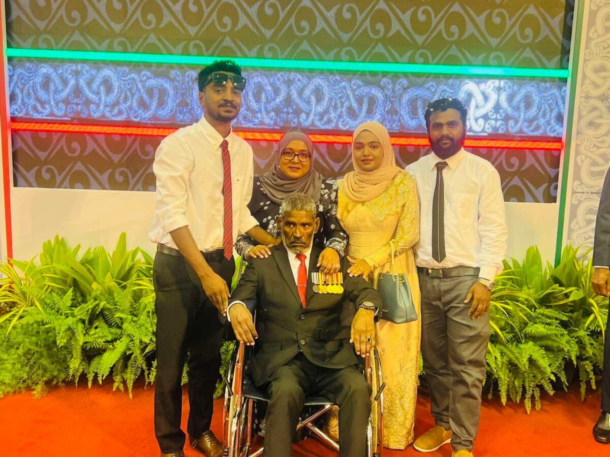 ސިފައިންގޭގައި ހިދުމަތް ކުރެއްވިއިރު ލިބިލެއްވި މެޑަލްތައް ލައިގެންހުރި ސޫޓުގައި ތަރުތީބު ކުރައްވައިގެން، ޝަރަފުވެރިކަމާއެކު ސާޖަންޓު އަލީ އެ އިނާމާ ހަވާލުވެލައްވަން ވަޑައިގަތީ ފުރޮޅުލީ ގޮނޑިއެއްގައެވެ. އަރިހުގައި އޭނާގެ އަނބިކަނބަލުން އަމްސޫދާ ޙުސެއިން ވެސް އޭނާއަށް ހިތްވަރުދިނުމަށް ފަޚުރުވެރިކަމާއެކު ހުއްޓެވެ.
