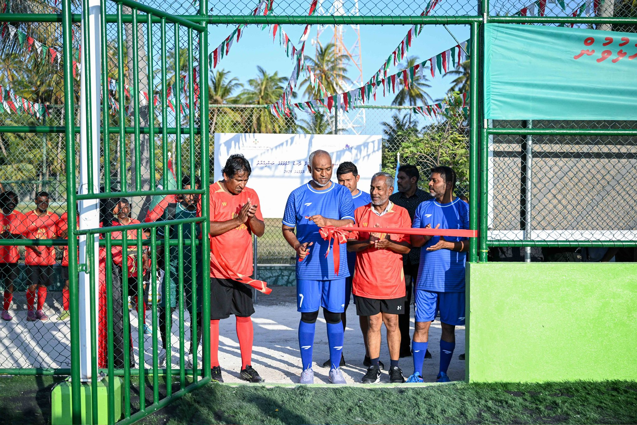 ދިގު 10 އަހަރުގެ އިންތިޒާރަކަށްފަހު، އދ. މަންދޫގެ ޒުވާނުން އެދިއެދިތިބި ފުޓްސަލް ދަނޑުގެ ނުނިމި ހުރި މަސައްކަތްތައް އެއްމަސްތެރޭ ނިންމައި، ރައީސުލްޖުމްހޫރިއްޔާ ޑރ. މުޙައްމަދު މުޢިއްޒު ރަސްމީކޮށް ހުޅުއްވައި ދެއްވައިފިއެވެ.