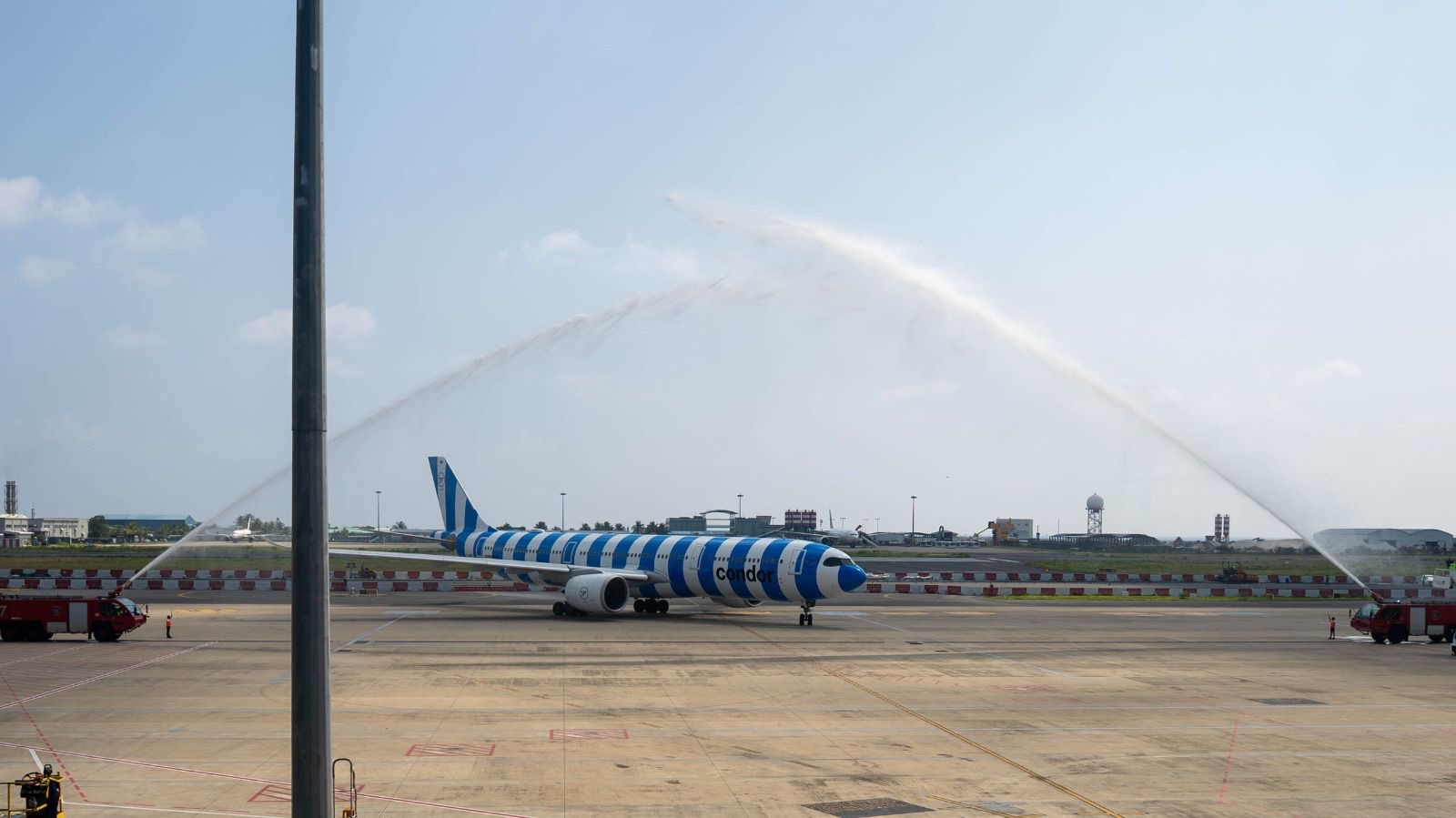 މިއަދުގެ ރަސްމިއްޔާތުގައި ކޮންޑޯގެ ޗެކިން ކައުންޓަރުތައް ރަސްމީކޮށް ހުޅުވައި, އެ އެއާލައިނުން ފުރި 302 ފަސިންޖަރުންނަށް ވަނީ ހަދިޔާ ދީފައެވެ. އަދި ޓާމިނަލް 1 އަށް ކައިރި ކުރި ކޮންޑޯގެ ފުރަތަމަ ފްލައިޓް, DE2320 އިން ރާއްޖެ އައި 277ފަސިންޖަރުންނަށް ވަނީ ސަގާފީ ހަރަކާތްތަކާއެކު ހޫނު މަރުހަބާއެއް ކިޔައިފައެވެ.