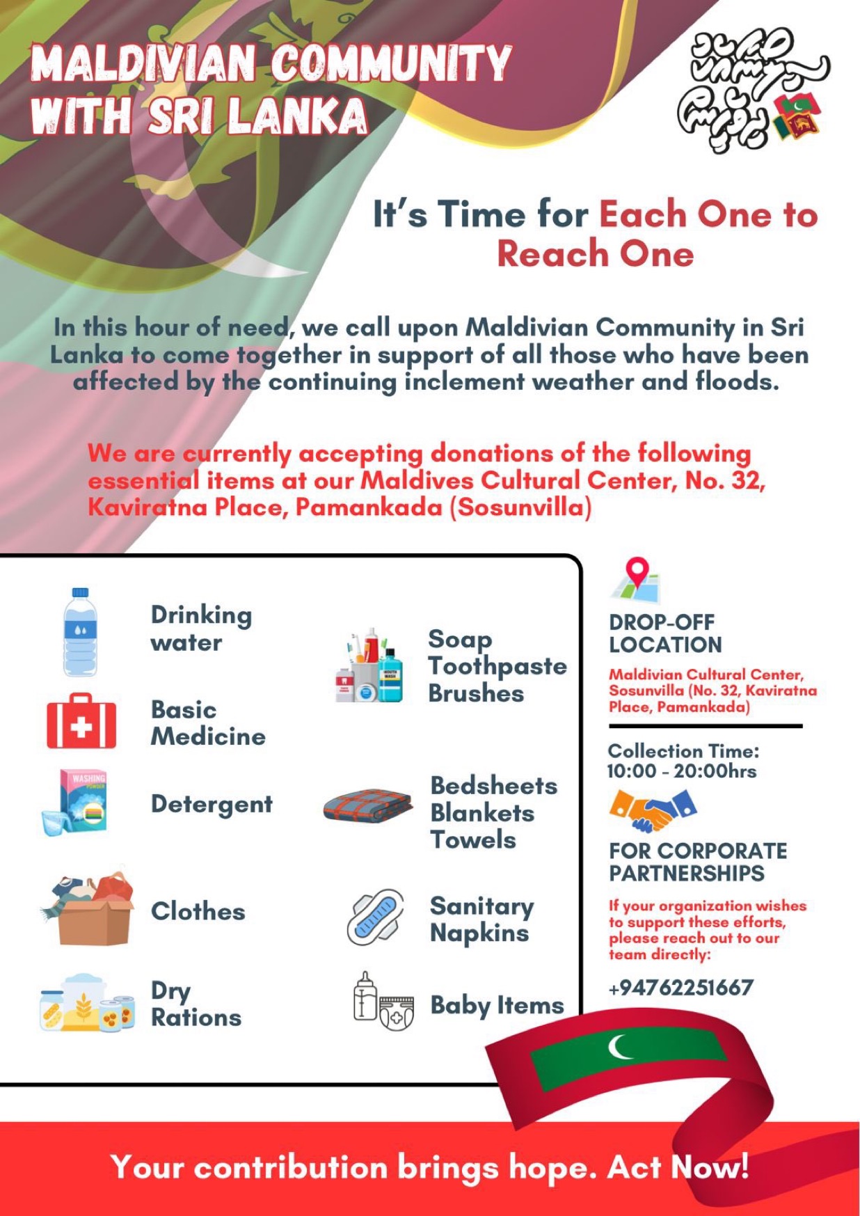 ސްރީލަންކާގެ މޫސުމީ ކާރިސާގައި ހާލުގައި ޖެހުނު މީހުންނަށް އެހީވުމަށްޓަކައި، އެ ޤައުމުގައި ދިރިއުޅޭ ދިވެހިންގެ ފަރާތުން ޚާއްޞަ ޑޮނޭޝަން ޕްރޮގްރާމެއް ފަށައިފިއެވެ.