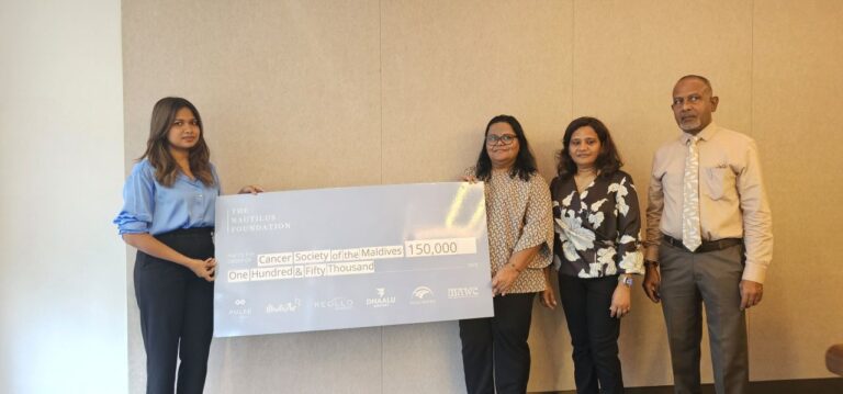 ނޯޓިލަސް ފައުންޑޭޝަނުން، ކެންސާ ސޮސައިޓީ އޮފް މޯލްޑިވްސް އަށް 150,000 ރުފިޔާގެ އެހީއެއް ދީފިއެވެ.