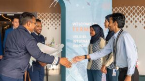 ދިވެހި ދެ ޕައިލެޓުންނާއެކު އެ ފްލައިޓް އިއްޔެ ރާއްޖެ އައުމުން ވެލާނާ އިންޓަނޭޝަނަލް އެއާޕޯޓުން ވަނީ ހޫނު މަރުހަބާއެއް ކިޔައިފައެވެ.