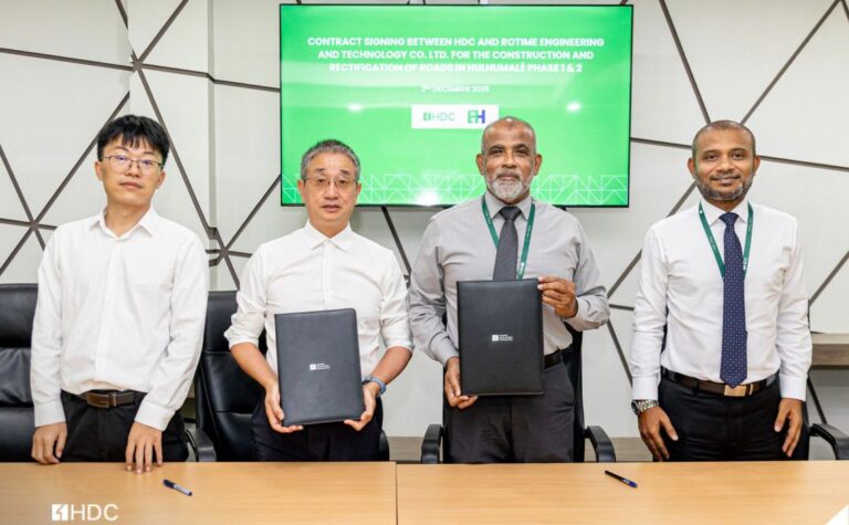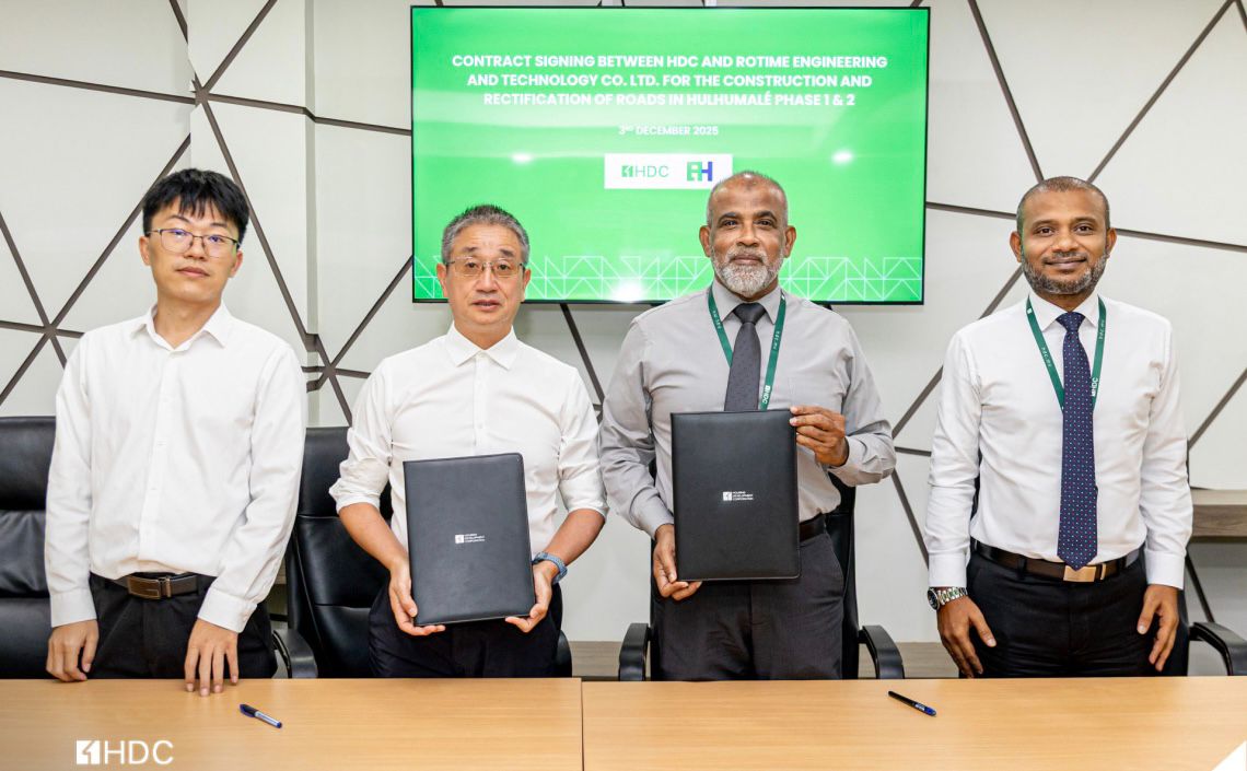 ހުޅުމާލެ 1 އަދި 2 ގައި ޖުމްލަ 1.1 ކިލޯ މީޓަރުގެ މަގުތައް 5-6 މަސް ދުވަހުގެ ތެރޭގައި ހެދުމަށް މި މަހުގެ ތިން ވަނަ ދުވަހު ހަވާލުކުރީ ޗައިނާގެ ރޮޓައިމް އިންޖީނިއަރިން އެންޑް ޓެކްނޮލޮޖީ ކުންފުންޏާއެވެ.