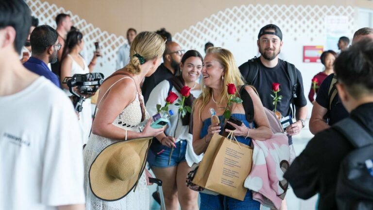 ”ޓާމިނަލް 1 އަށް ކައިރި ކުރި ސްރީލަންކަން އެއާލައިންސްގެ ފުރަތަމަ ފްލައިޓުން ރާއްޖެ އައި 277 ފަސިންޖަރުންނަށް ވަނީ ސަގާފީ ހަރަކާތްތަކާއެކު ހޫނު މަރުހަބާއެއް ކިޔާފައި“ އެމްއޭސީއެލް އިން ބުނެފައި ވެއެވެ.