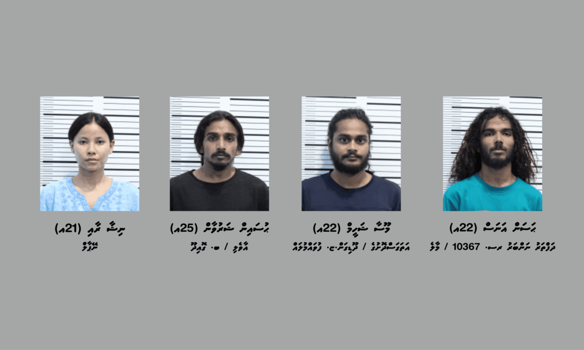 މި މައްސަލާގައި ހައްޔަރުކޮށްފައިވަނީ ދަފްތަރު ނަންބަރު ރސ. 10367 / މާލެ، ޙަސަން އަނަސް (22އ) އާއި އަތަގަސްދޮށުގެ / ދޫޑިގަން.ޏ. ފުވައްމުލައް، މޫސާ ޝަހީމް (22އ) އާއި އާވެލި / ބ. ގޮއިދޫ، ޙުސައިން ޝަރުވާން (25އ) އަދި ނޭޕާލް ރައްޔިތެއްކަމަށްވާ ނިޝާ ރާއި (21އ) އެވެ.