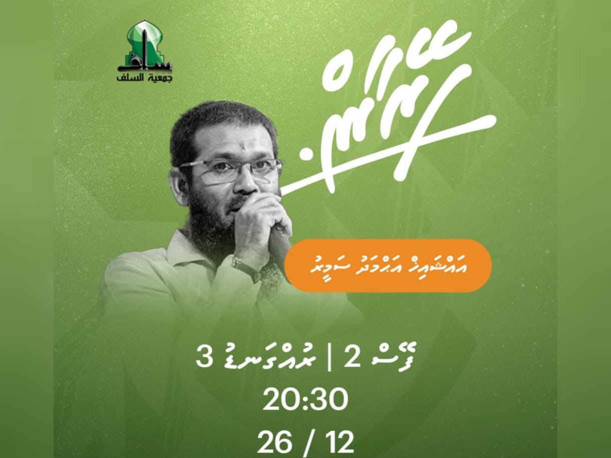 ”ފޭރާން“ މި މައުޟޫއަށް ހާއްސަކޮށްގެން މާދަމާ ރޭ ބާއްވާ ދަރުސް ދެއްވާނީ ޖަމްޢިއްޔަތުއްސަލަފްގެ ނައިބު ރައީސް އަދި ޢިލްމުވެރިންގެ މަޖިލީހުގެ ރައީސް އައްޝައިޚް އަޙްމަދު ސަމީރުއެވެ.