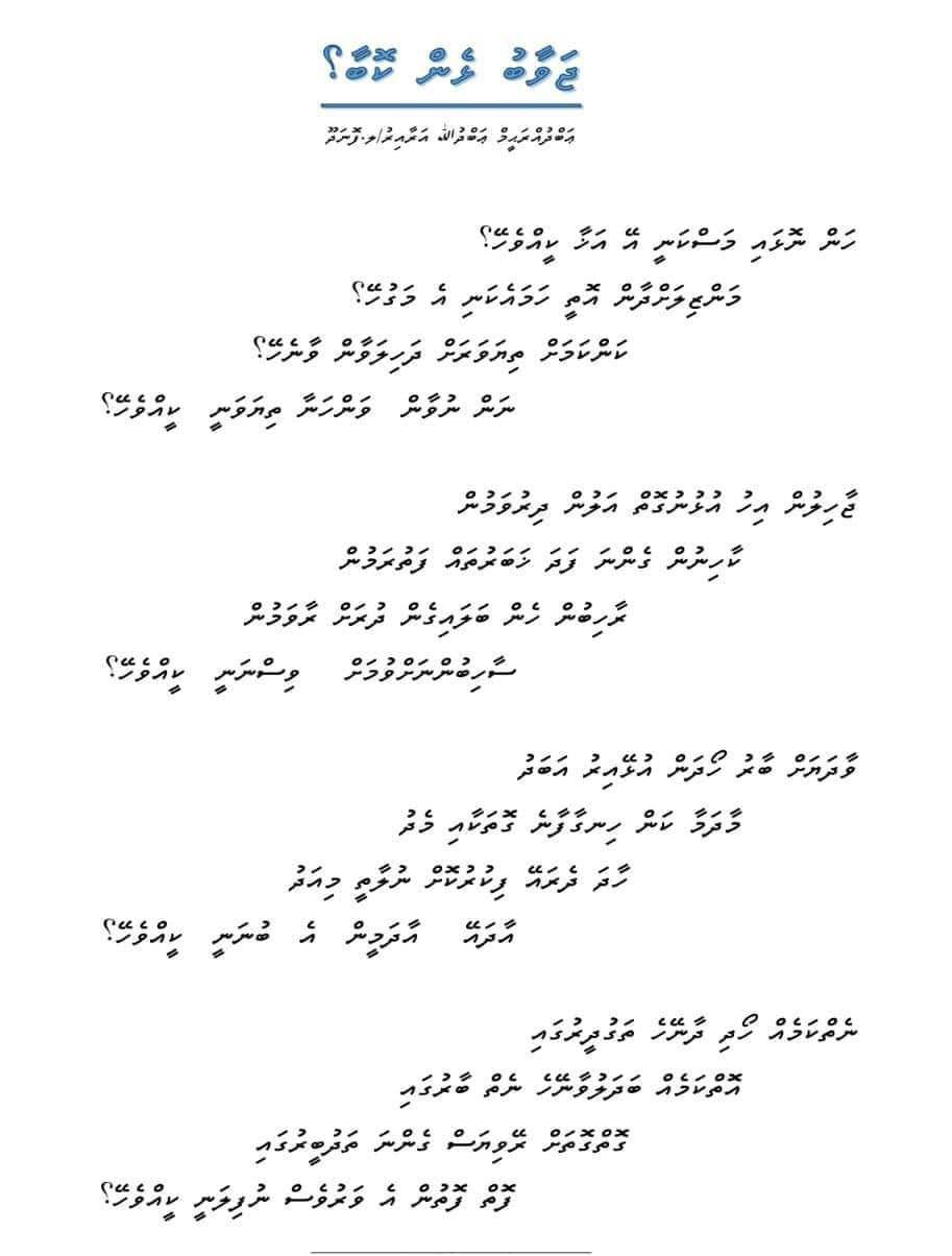 ޅެމުގައި އަދުރޭ އިތުރަށް ސުވާލު ކުރެއްވީ ”ކަން ކަމާ ތިޔަވަރަށް ދަހިލަވާން ވާނެ ތޯ“ އެވެ.
