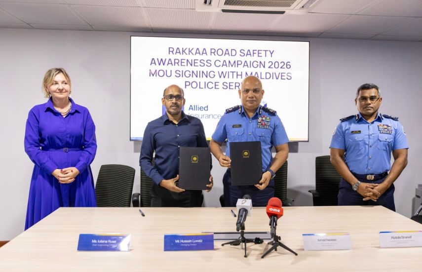 މިއަދުގެ ރަސްމިއްޔާތުގެ އެންމެ މުހިންމު އެއް ކަމަކީ ”ރައްކާ 2026“ މަގުމަތީގެ ސަލާމަތާއި ރައްކާތެރިކަމުގެ ކެމްޕޭން ކުރިއަށް ގެންދިއުމަށްޓަކައި މޯލްޑިވްސް ޕޮލިސް ސާވިސްއާއެކު ފަހުމުނާމާއެއްގައި ސޮއިކުރުމެވެ. މި އެއްބަސްވުމުގައި އެލައިޑްގެ ފަރާތުން ސޮއިކުރެއްވީ މެނޭޖިންގ ޑިރެކްޓަރ އަލްފާޟިލް ޙުސައިން ލުވައިޒެވެ. ފުލުހުންގެ ފަރާތުން ސޮއިކުރެއްވީ ކޮމިޝަނަރ އޮފް ޕޮލިސް އަލްފާޟިލް އިސްމާޢީލް ނަވީނެވެ.