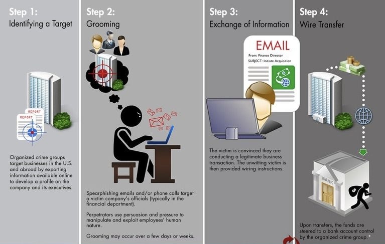 މިފަދަ ސްކޭމްތަކުގައި ކުށްވެރިން އީމެއިލް ފޮނުވަނީ އިތުބާރުކުރެވޭ ފަރާތްތަކަށް ވެގެންނެވެ. އޭގެ ތެރޭގައި ކުންފުނިތަކުގެ ސީ.އީ.އޯގެ ނަމުގައި ގިފްޓް ކާޑު ގަތުމަށް އެދުމާއި، ސަޕްލަޔަރުންގެ ނަމުގައި ބޭންކު އެކައުންޓު ބަދަލުވިކަމަށް ބުނެ މެސެޖު ފޮނުވުން ހިމެނެއެވެ.