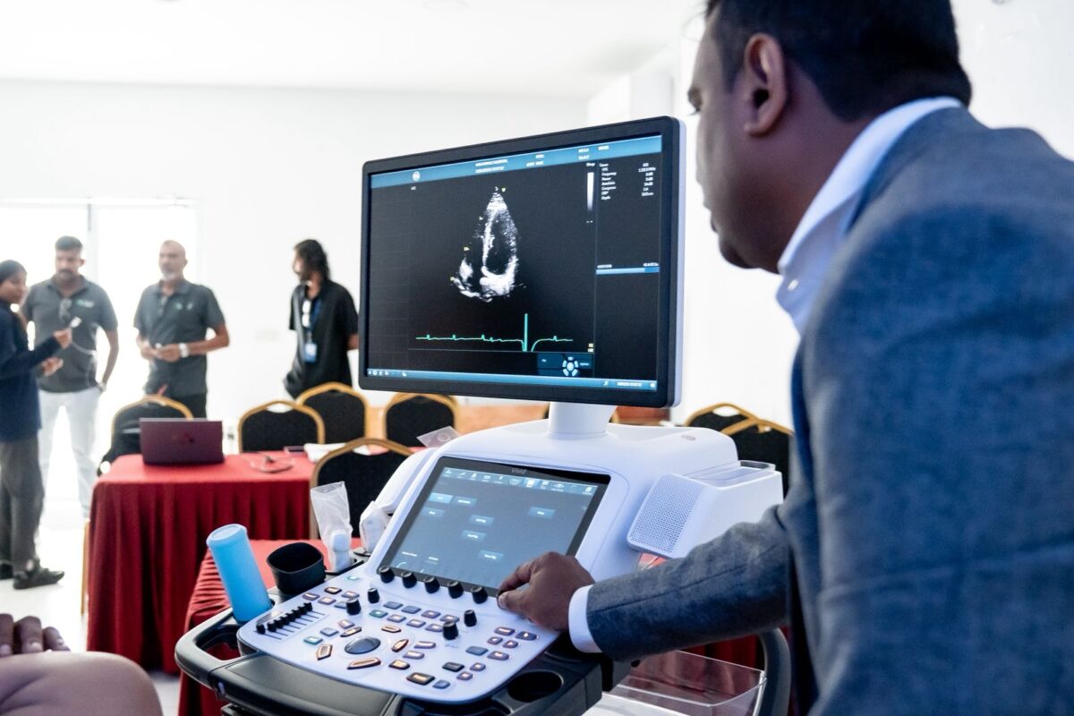 އެސްޓީއޯ ހެލްތުކެއާގެ ފަރާތުން ސިއްހީ ހިދުމަތްދޭ ތަންތަނުގައި ޒަމާނީ ޑައިގްނޯސްޓިކް އިކުއިޕްމަންޓް ފޯރުކޮށްދީ ޚާއްސަ ބަލިތަކަށް ދެވޭ ފަރުވާގެ ފެންވަރު ރަނގަޅު ކުރުމަށް ކުރަމުންދާ މަސައްކަތުގެ ދަށުން، އެންމެ ފަހުގެ ކާޑިއޯވަސްކިއުލަރ އަލްޓްރާސައުންޑް ސިސްޓަމެއް ހުޅުމާލޭ ހޮސްޕިޓަލަށް ފޯރުކޮށްދީފިއެވެ.
