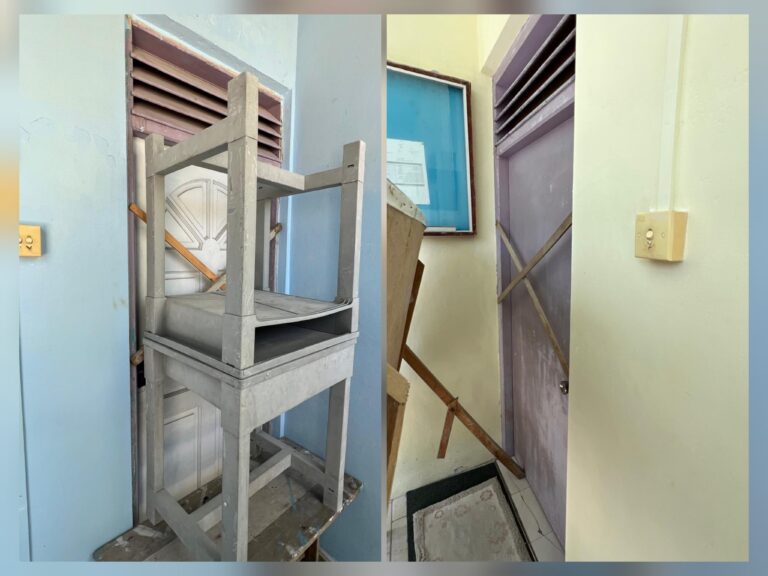 ޝުޖާއިގެ އެ ޕޯސްޓާއެކު އާންމުކުރެއްވި ފޮޓޯތަކުގައި ފެންނަނީ ކައުންސިލް ދޮރު ފިލާޖަހައި ބަންދުކޮށް، ދޮރު މަތީގައި ޑެސްކްތަކެއް އަތުރާފައި ހުއްޓައެވެ.