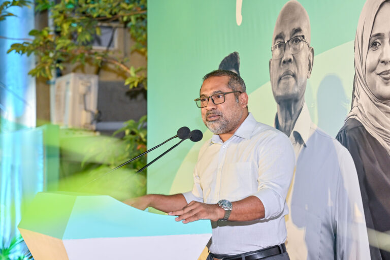 ފޮރިން މިނިސްޓަރ މިހެން ވިދާޅުވީ ޕީއެންސީގެ ފަރާތުން ހުޅުމާލޭ މެދު ދާއިރާގެ ކައުންސިލަރުކަމަށާއި އަންހެނުންގެ ތަރައްގީއަށް މަސައްކަތްކުރާ ކޮމިޓީގެ އެ ދާއިރާގެ މެންބަރުކަމަށް ވާދަކުރައްވާ ކެންޑިޑޭޓުގެ ކެމްޕެއިން ޖަގަހަ ހުޅުވުމަށް ރޭގައި ބޭއްވި ޖަލްސާގައި ވާހަކަ ދައްކަވަމުންނެވެ.