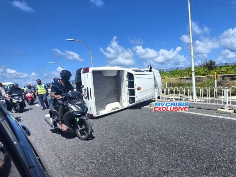 ހުޅުމާލެއިން އެއާޕޯޓަށް ދަތުރުކުރި ވެހިކަލެއް ހައިވޭގެ ފެންސުގައި ޖެހި ފުރޮޅާލައިފިއެވެ.