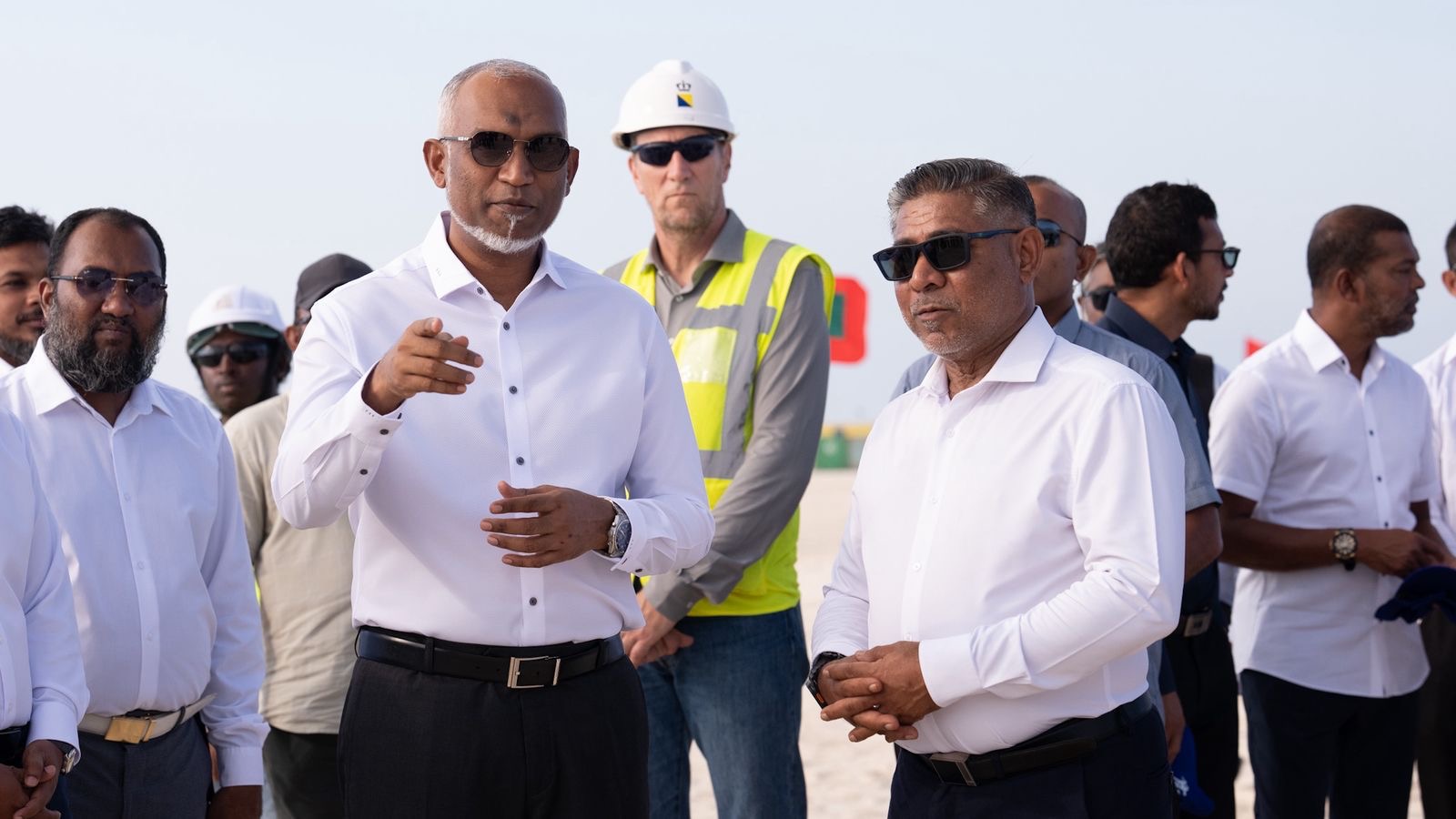 ރައީސް ވަނީ ބިން ހިއްކުމުގެ މަސައްކަތް ކުރިއަށްދާ ސައިޓަށް ވަޑައިގެން، މަޝްރޫޢުގެ އެންމެ ފަހުގެ މަޢުލޫމާތުތައް އޮޅުންފިލުއްވާފައެވެ.