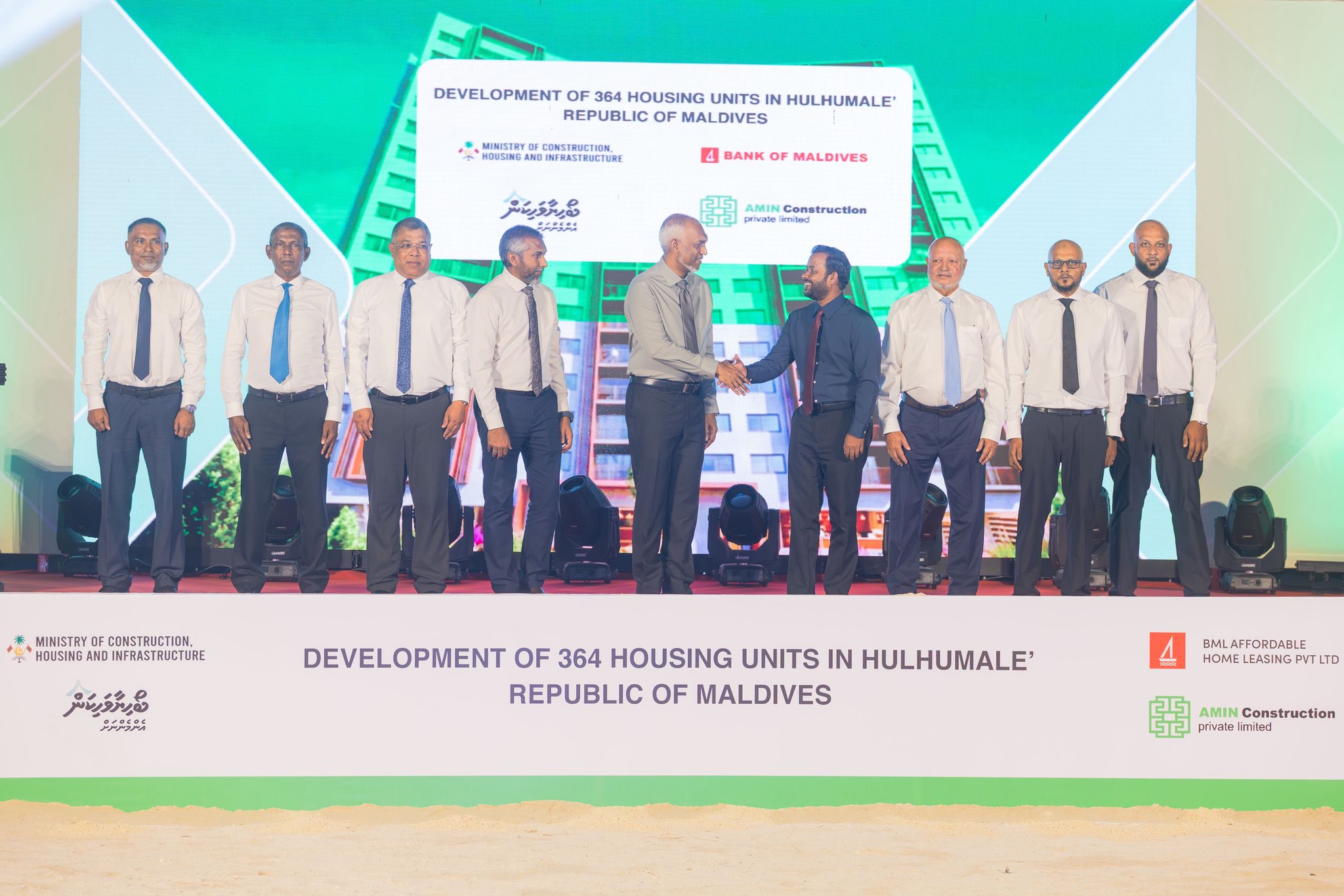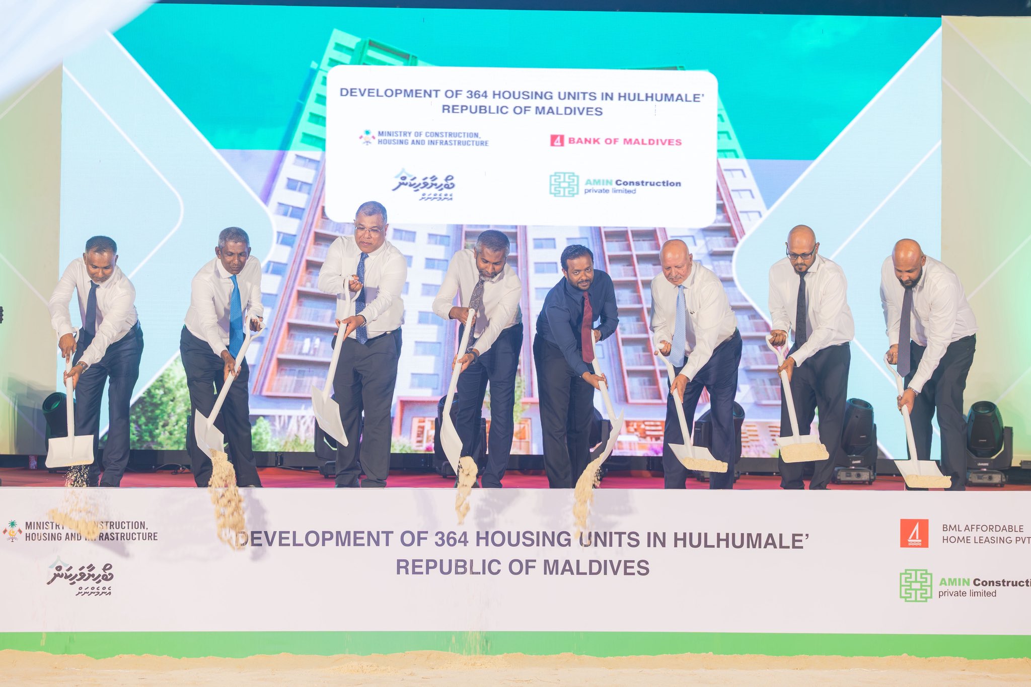 މި ރަސްމިއްޔާތުގައި މި މަޝްރޫޢުގެ ބިންގާ އަޅުއްވައިދެއްވީ އިމާރާތްކުރުމާއި ގެދޮރުވެރިކަމާއި ބިނާރާ ބެހޭ ވަޒީރު ޑރ. ޢަބްދުﷲ މުއްތަލިބާއި، ބީއެމްއެލްގެ ޗެއަޕަރސަން އަޙުމަދު ޢަލީ ޙަބީބާއި، ބީއެމްއެލްގެ ސީއީއޯ މުޙައްމަދު ޝަރީފްގެ އިތުރުން ބީއެމްއެލް އެފޯޑަބަލް ހޯމް ލީސިންގެ އެމްޑީ ޙަސަން ޝާމްއެވެ.