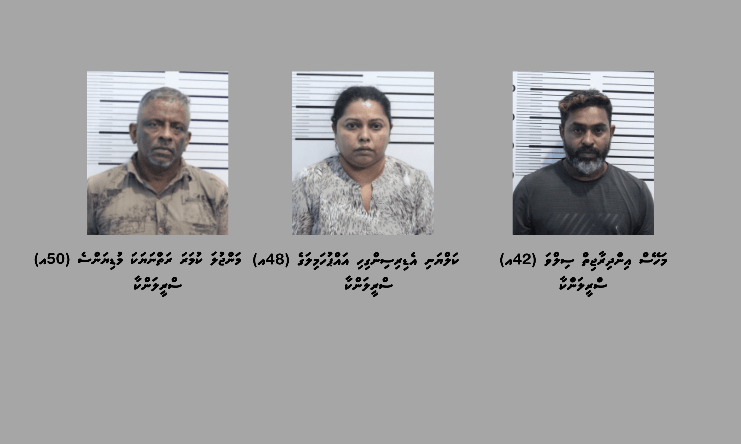 މި މައްސަލަ އާ ގުޅިގެން ހައްޔަރުކޮށްފައި ވަނީ މަހޭސް އިންދިރާޖިތް ސިލްވަ (42އ) އާއި ކަލްޔަނި އެޑިރިސިންގިހި އައްޕުހަމިލަގެ (48އ) އާއި މަންޖުލަ ކުމަރަ ރަތްނަޔަކެ މުޑިޔަންސެ (50އ) އެވެ. މި ތިން މީހުންނަކީ ވެސް ސްރީލަންކާއަށް ނިސްބަތްވާ މީހުންނެވެ.