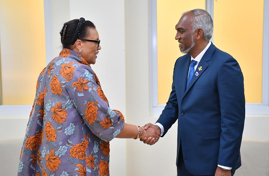 ރައީސުލްޖުމްހޫރިއްޔާ ޑރ. މުހައްމަދު މުއިއްޒު، ކޮމަންވެލްތުގެ ސެކްރެޓަރީ ޖެނެރަލް ރައިޓް އޮނަރަބްލް ޕެޓްރީޝިއާ ސްކޮޓްލޭންޑް ކޭ.ސީ.އާ ބައްދަލުކުރައްވައިފިއެވެ. މިބައްދަލުކުރެއްވުން ކުރިޔަށް ދިޔައީ، ހަތަރުވަނަ އިންޓަރނޭޝަނަލް ކޮންފަރެންސް އޮން ސްމޯލް އައިލެންޑް ޑިވެލޮޕިން ސްޓޭޓްސް (ސިޑްސް) ގައި ބައިވެރިވެވަޑައިގަތުމަށް އެންޓީގާ އެންޑް ބާބިޔުޑާއަށް ރައީސް ކުރައްވަމުންގެންދަވާ ދަތުރުފުޅުގެ ހަވާސާގައެވެ.