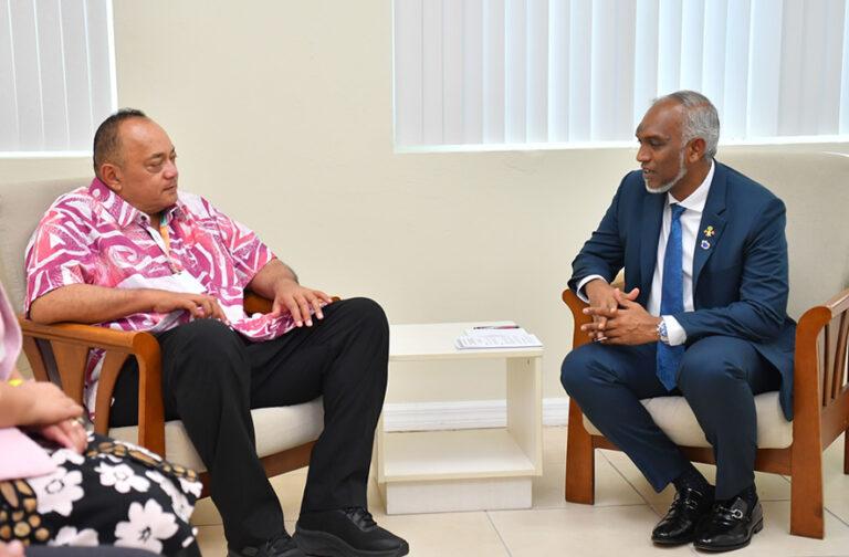 މި ބައްދަލުވުމުގައި މައިގަނޑުގޮތެއްގައި މަޝްވަރާކުރައްވާފައި ވަނީ ތަރައްޤީވަމުން އަންނަ ކުދި ޖަޒީރާ ޤައުމުތަކުން ތަރައްޤީގެ މަގުގައި ކުރިޔަށްދާއިރު އަމިއްލަ ފުދުންތެރިކަމާއެކު ކުރިޔަށްދިއުމުގެ މުހިންމުކަމުގެ މައްޗަށެވެ. މީގެ އިތުރުން ދެ ލީޑަރުން ވަނީ މަލްޓިލެޓަރަލް ކްލައިމެޓް ފަންޑުގެ އެހީތެރިކަން ހޯދުމަށް މިހާރު އޮންނަ ގޮތްތައް އިތުރަށް ހަރުދަނާކުރުމަށް ހުރި ފުރުޞަތުތަކާ ގުޅޭގޮތުންވެސް މަޝްވަރާކުރައްވާފައެވެ.