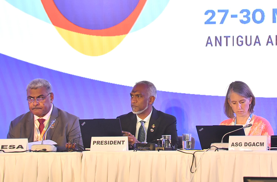 އ.ދ. އިން އިންތިޒާމުކޮށްގެން ބާއްވާ، ތަރައްޤީވަމުން އަންނަ ކުދި ޖަޒީރާ ޤައުމުތަކުގެ 4 ވަނަ ކޮންފަރެންސް (ސިޑްސް4) ގައި ދިވެހިރާއްޖޭގެ އަޑު، ރައީސުލްޖުމްހޫރިއްޔާ ޑރ. މުހައްމަދު މުއިއްޒު ދުނިޔެއަށް އިއްވައިދީފިއެވެ.