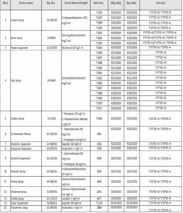 އެމްއެފްޑީއޭއިން ނެރުނު ސަމާލެއްގައި ބުނެފައިވަނީ، ތައިލެންޑްގެ ބޭސް އުފައްދާ ކުންފުންޏެއްގެ ކަމަށްވާ ސެވަން ސްޓާސް ފާމަސޫޓިކަލްސް އިން ބޭސް އުފެއްދުމުގައި ބޭނުންކޮށްފައިވާ އެކްސޮޕިއެންޓެއް ގައި ނުރައްކާތެރި ކެމިކަލްގެ މާއްދާއެއް އެކުލެވިފައިވާތީ ތައިލެންޑްގެ ބޭސް ރެގިއުލޭޓް ކުރާ އޮތޯރިޓީ އިން 15 ބާވަތެއްގެ ބޭސް ބޭނުން ނުކުރަން އަންގާފައިވާ ކަމަށެވެ.