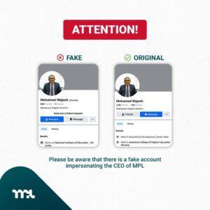 ސޯޝަލް މީޑިއާ ޕްލެޓްފޯމެއްކަމަށްވާ ފޭސްބުކް(އެފްބީީ) ގައި، މޯލްޑިވްސް ޕޯޓްސް ލިމިޓެޑް(އެމްޕީއެލް)ގެ ސީއިއޯ އިސްމާއިލް ވަޖީހު އިބްރާހިގެ ނަމުގައި ފޭކް އެކައުންޓެއް ހަދައި، އެ އެކައުންޓުން އެކި މީހުންނަށް ސައްހަ ނޫން މެސެޖުތައް ކުރަމުންދާ ކަމަށް އެމަނިކުފާނު ވިދާޅުވެއްޖެއެވެ.