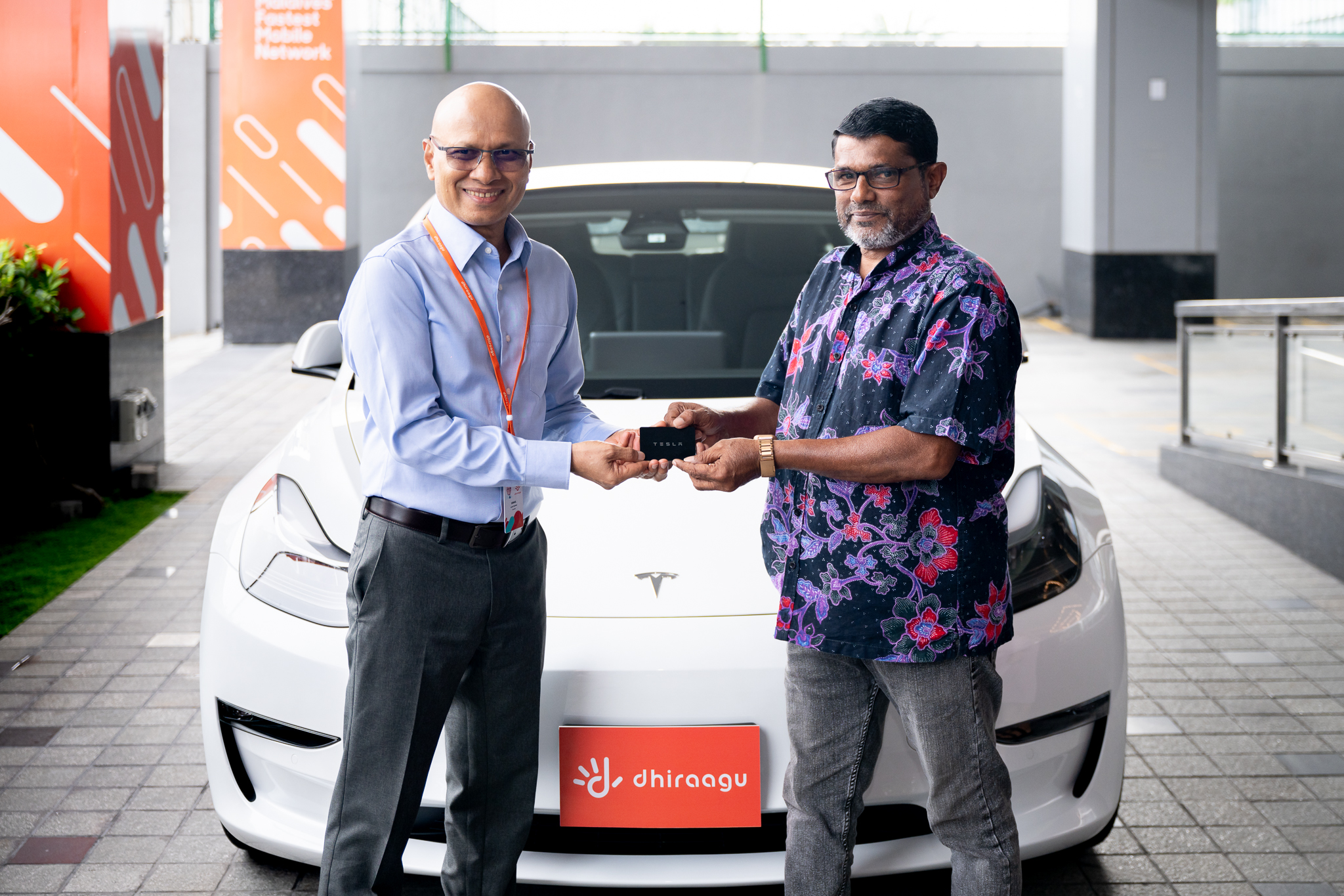 ދިރާގުން ކުރިޔަށްގެންދިޔަ ’ވިން އަ ޓެސްލާ‘ ޕްރޮމޯޝަންގެ ނަސީބުވެރިޔަކަށް ހޮވުނު މުސްޠަފާ މުހައްމަދާ ޓެސްލާ ކާރު ހަވާލުކޮށްފި އެވެ.