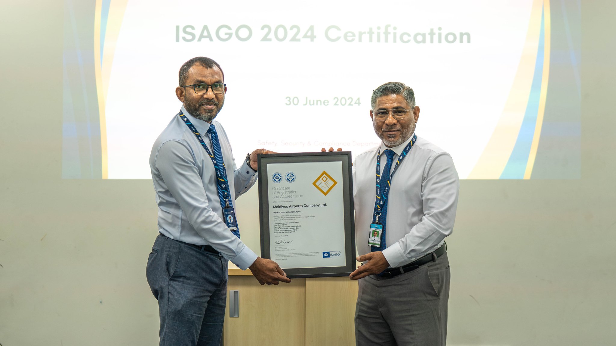 އެއާޕޯޓް އޮަޕަރޭޓްކުރަމުން އަންނަ ކުންފުނި، މޯލްޑިވްސް އެއާޕޯޓްސް ކޮމްޕެނީ ލިމިޓެޑް(އެމްއޭސީއެލް) އިން ބުނީ، އިންޓަނޭޝަނަލް އެއާ ޓްރާންސްޕޯޓް އެސޯސިއޭޝަން(އައިއޭޓީއޭ) ސޭފްޓީ އޮޑިޓް ފޯ ގްރައުންޑް އޮޕަރޭޝަންސް(އައިއެސްއޭޖީއޯ) އާ ކޮށްފައިވާކަމަށާއި، އޭގެއިން ފާސްވެފައިވަނީ އޭވިއޭޝަން ސޭފްޓީއާއި ކޮމްޕްލައިންސްގެ އެންމެ މަތީ ފެންވަރުގައި ކަމަށެވެ.