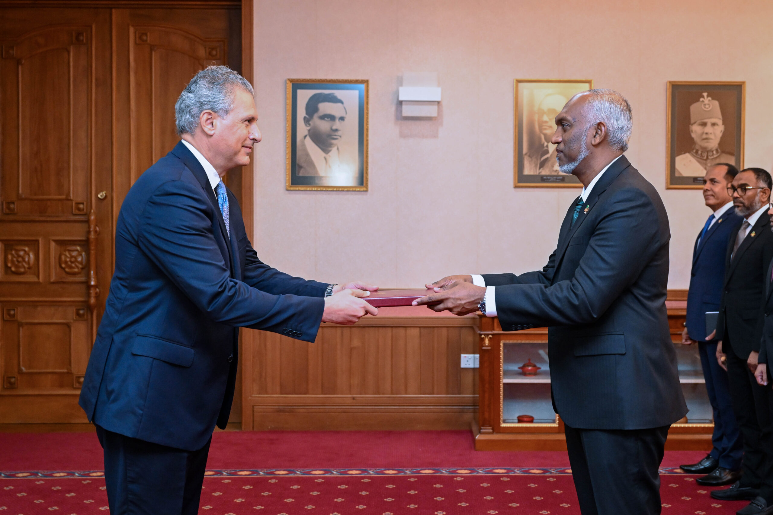 އުރުދުންގެ ސަރުކާރުން ދިވެހިރާއްޖެއަށް ކަނޑައެޅުއްވި އައު ސަފީރު، ޑރ. މައެން ޚުރައިސަތު އެމަނިކުފާނުގެ ސަފީރުކަމުގެ ފަތްކޮޅު ރައީސުލްޖުމްހޫރިއްޔާ ޑރ. މުޙައްމަދު މުޢިއްޒުއަށް މިއަދު އަރުވައިފި އެވެ.