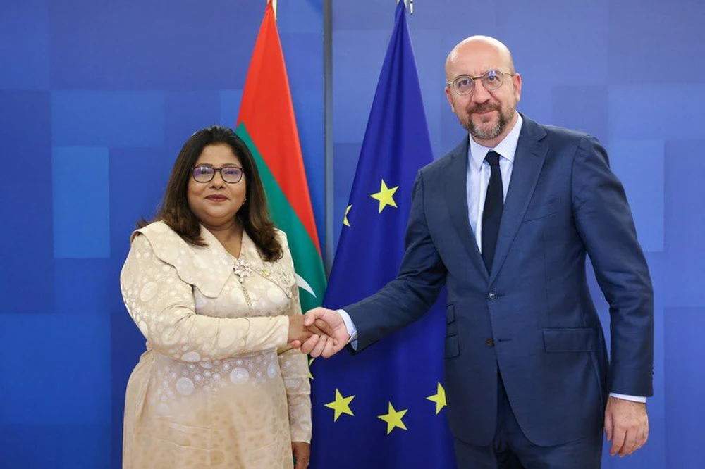 ފަތްކޮޅުއެރުވުމުގެ ރަސްމިއްޔާތަށްފަހު ބޭއްވެވި ބައްދަލުވުމުގައި ސަފީރު ޤީލާ ޢަލީ، ރައީސުލްޖުމްހޫރިއްޔާ ޑރ. މުހައްމަދު މުއިއްޒުގެ ފަރާތްޕުޅުން ޔޫރަޕިއަން ޔޫނިއަންގެ ރައީސް ޗާލްސް މިޝެލް އަށް ތަހުނިޔާ އާއި ހެޔޮއެދުންތައް އަރިސްކުރެއްވި އެވެ.