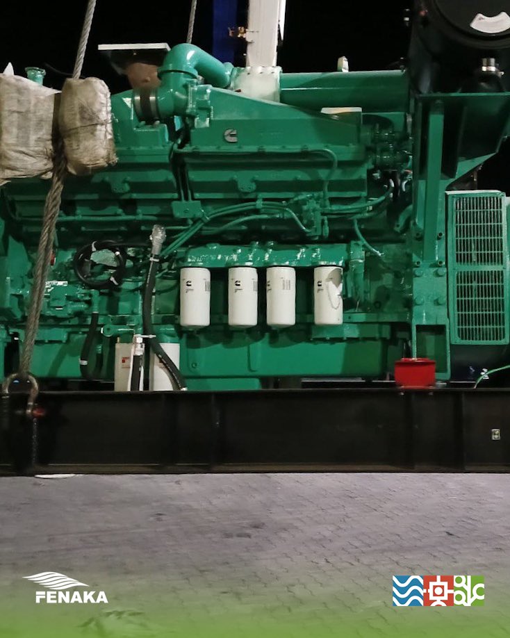 ފެނަކައިން މިހާރު ވަނީ އެރަށަށް އާ ޖެނެރޭޓަރެއް ގެންގޮސްފަ އެވެ. 600 ކވ ގެ މި ޖަނަރޭޓަރު އިންސްޓޯލް ކުރުމުގެ މަސައްކަތް ފެނަކައިން ދަނީކުރަމުންނެވެ.